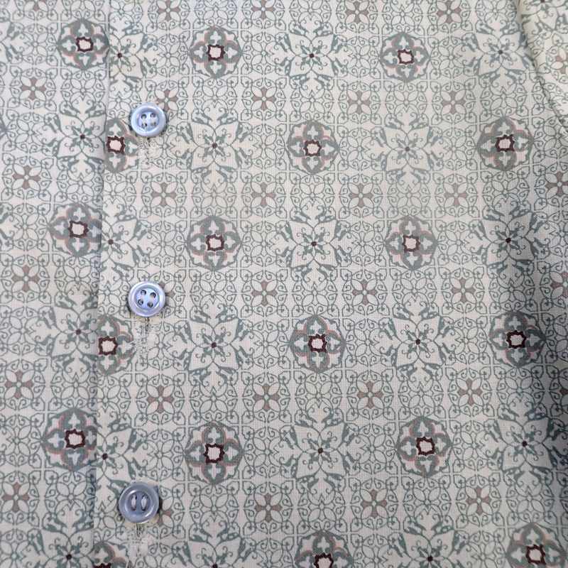 Chemise manches longues ivoire et grise en coton imprimée faïence. Sa coupe est droite et le col classique.