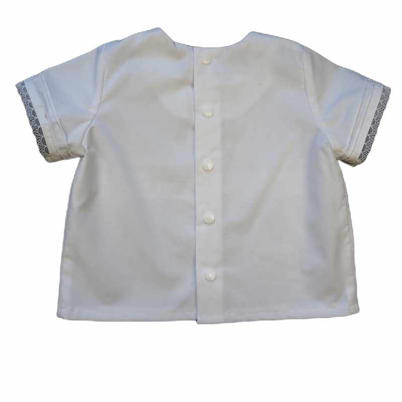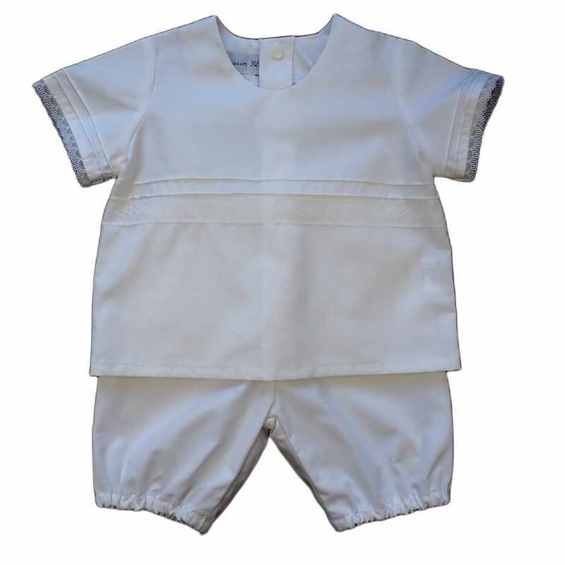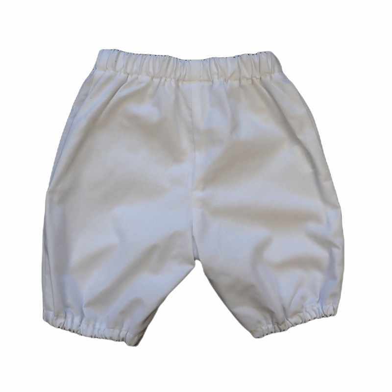 Ensemble en coton blanc composé d’un pantacourt et d’un haut décoré de plis piqués. Idéal pour une cérémonie comme un baptême.